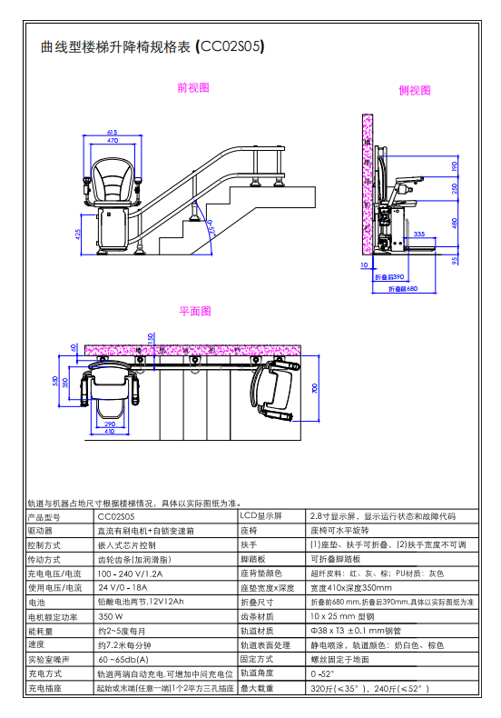 产品特点 独特设计:采用曲线设计,可优美旋转上升,美观大方,契合楼梯形状。 高效节能:运用先进节能技术,运行能耗低,使用寿命长,降低使用成本。 安全可靠:严格遵循国际安全标准,配备紧急制动系统、防坠落装置等安全装置。 不占空间:安装不破坏楼层原有结构,轨道纤薄,占用空间小。 应用场景 小区住宅:为行动不便的居民,尤其是老年人、残疾人等提供便利,让他们能轻松上下楼。 自建房:满足家庭成员快